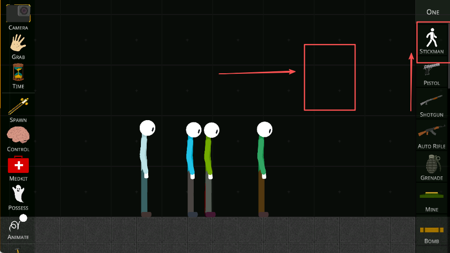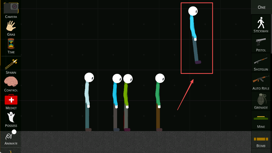 3、在工具栏中选择各种武器和爆炸物,包括枪械、炸弹、火箭等,用这些工具攻击火柴人,观察不同的破坏效果和物理反应,享受破坏的乐趣。
