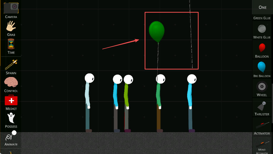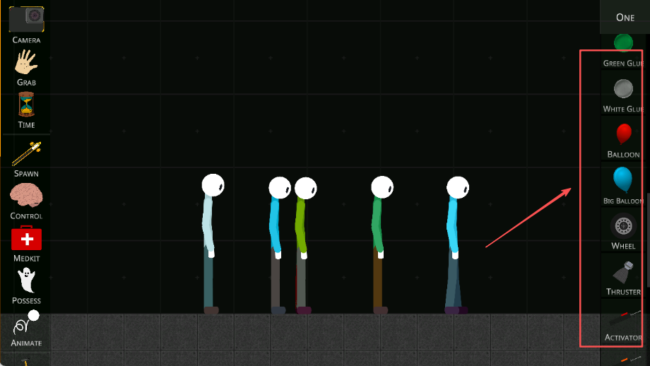 1、点击工具栏放置人物,在游戏界面右侧工具栏选择火柴人图标,点击后就可以在场景中放置火柴人角色,可以放置多个火柴人进行不同实验。
