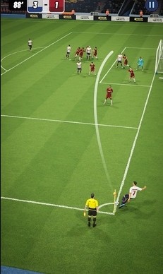 2、进入关卡后滑动屏幕可以画出球员踢球的路径,松开手指球员就会将球踢到指定位置。