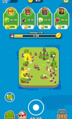 6、游戏的整体玩法就是根据上方的觉得所需要的水果,然后进行种植回收,直至完成任务获得金币。